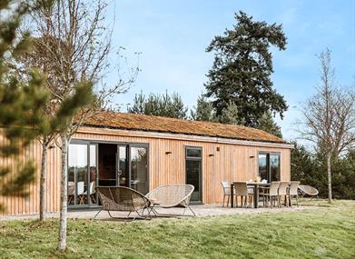Contemporary open-plan living spaces with floor-to-ceiling windows, modern kitchens, private hot tubs, and parkland views. Ideal for families or small groups seeking a stylish countryside escape.