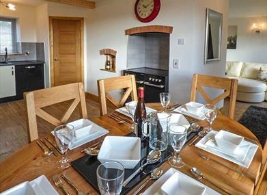 Leading from the kitchen is a superb sitting room, where you can relax on the leather sofas and enjoy the flickering light of the cast-iron deluxe electric woodburner-effect fire after a busy day exploring the area. Via French doors, step outside onto the decked area where you can relax in the soothing 7-seater Jacuzzi Spa hot tub, whilst soaking up the peace and quiet that comes as standard at this luxury farmhouse.