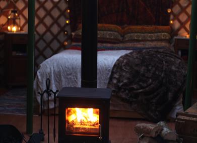 - Wood burning stove with all the fuel you might need, fire lighting materials and fire-guard