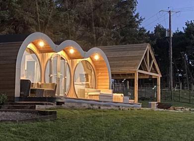 Luxury pods which each sleep up to 4 people (double bed and sofa bed - ideally suited to 2 guests but can accommodate 4)