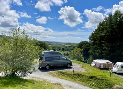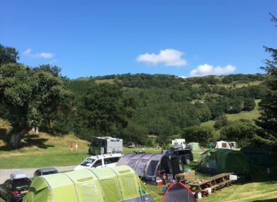 The campsite is popular with walkers, cyclists, individuals, couples and families; the site offers elevated views over the Dovey Valley, woodlands, and a riverside walk.