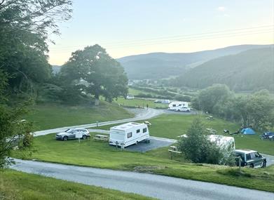 The campsite is popular with walkers, cyclists, individuals, couples and families; the site offers elevated views over the Dovey Valley, woodlands, and a riverside walk.