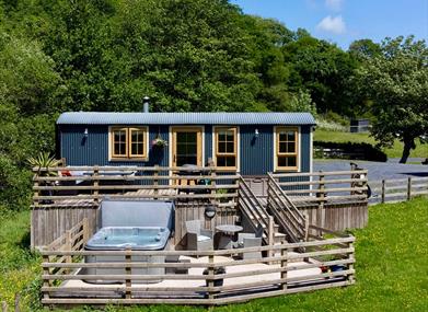 • What it is: A collection of five self-catering shepherd’s huts with private hot tubs near Darowen, Powys.