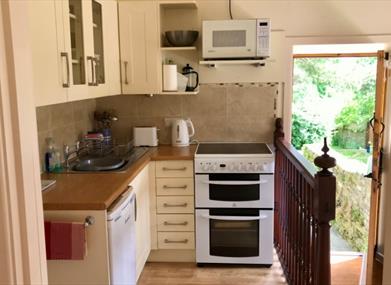 Converted from an old workshop, Haywood Cabin offers cosy but spacious studio accommodation for two people. Reached by a steep track, it is located by the side of an old farmyard.