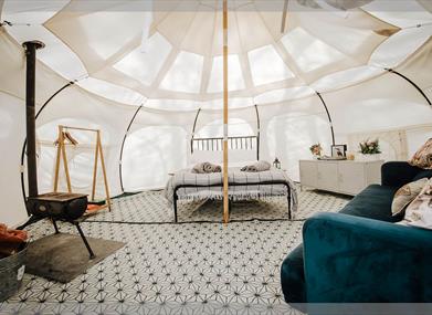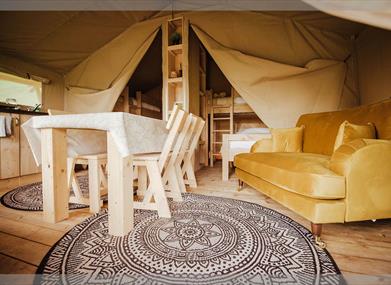 Set in 13 acres of beautiful pasture and woodland, the Lotus Belle tents and Safari Tents both come fully furnished and equipped with everything you might need to guarantee you’ll have a memorable experience here.