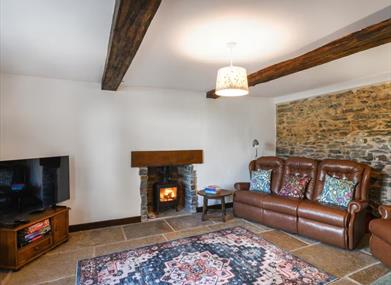 Living room: Smart TV, Woodburner