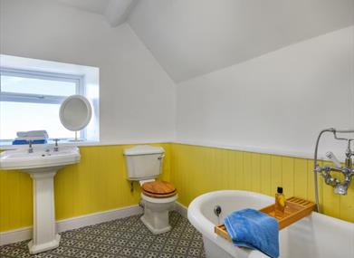 Bathroom: Bath With Shower Attachment, Heated Towel Rail, Toilet