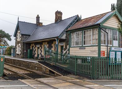 The station is located close to the village centre off the A470 by a level crossing on the B4569 to Trefeglwys.