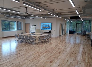 First floor function room for hire, ideal for meetings, presentations, conferences, classes, craft fairs, children's parties and private dining. Adjoining the balcony we have the “Cwtch” a small informal area with comfortable furniture suitable for smaller less formal meetings. It provides the ideal meeting place situated on the Back Lane Car park and is the gateway to Newtown’s green spaces alongside the River Severn.