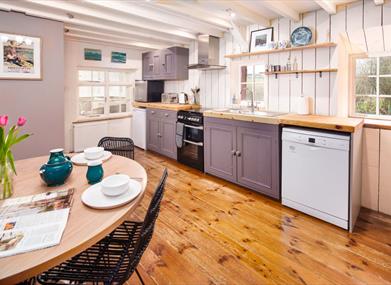 A characterful semi-detached cottage, built in part of a renovated dairy barn, sleeping 4, with a small enclosed garden. The cottage includes 2 bedrooms: 1 x king sized beds and 1 double bed, 3 bathrooms and a kitchen.