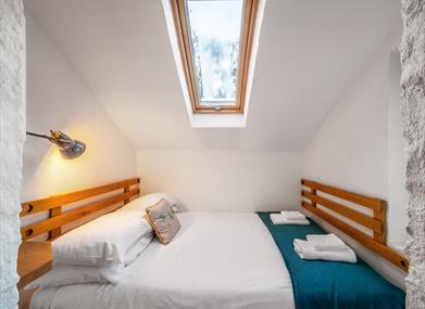 There is a cosy double bedroom, with a skylight for star gazing, an open plan living area with kitchen, lounge and dining area and a spacious shower room.