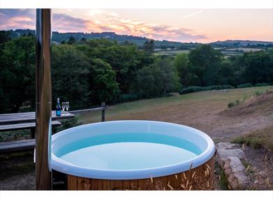 Seren isafari tent has a wood-fired hot tub, and Seren, Aderyn and Afon all have a private flushing toilet and sink inside the tent, with the shower block a short distance across the field.