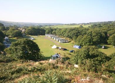 The campsite covers an area of approximately five acres mostly on level ground with a few nooks and crannies for you to choose from. Camping is split into a lower field by the stream and upper field surrounded by oak trees. Each pitch has its own picnic table.