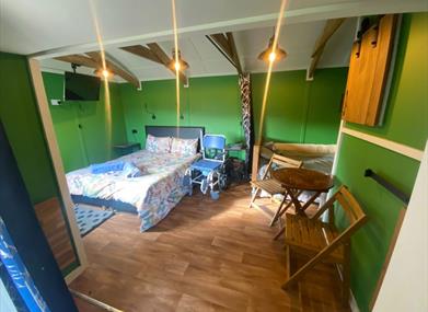 Hafan y Mynydd has sliding doors or curtains throughout, and all sockets and switches are at wheelchair-accessible height. The hut has a 1m space with double socket to charge electric wheelchairs.