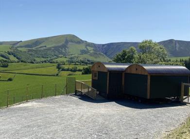Hafan y Mynydd is situated at Dulas Glamping on a family hill farm. Camping is also available on site - please enquire. A complimentary welcome hamper, bed linen, towels, guest toiletries, crockery, cutlery and pans are included with the shepherd’s hut.