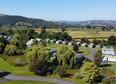 Each pitch has its own private parking and well lit tarmac roads, surrounded by large areas of green or overlooking our fishing ponds and fields with outstanding panoramic views of the surrounding hills that Mid Wales is famous for.