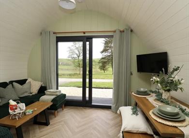 'Willow', our rustic yet modern glamping pod has two spacious bedrooms sleeping up to five guests. Suitable for two couples; one master bed in the living area and a smaller double and single bunk above in bedroom two; or an ideal stay for a couple with or without children.