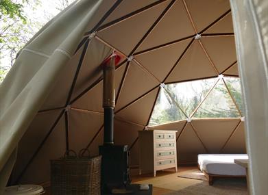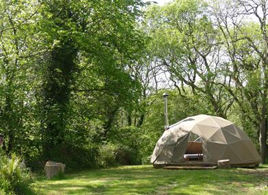 Lovely Geodesic Dome dwelling with self-catering cook tent situated close by. Perfect for couples or families or group of 3 or 4 friends.