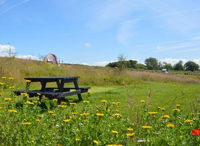Bookable meals (hot breakfast, cooked lunch and a two-course evening meal) at the Preseli Venture eco lodge next door (outdoor covered seating in the courtyard).