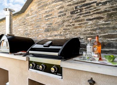Outside, enjoy the large dog-friendly garden with an outdoor kitchen (BBQ & pizza oven), dining area, and lounge seating—perfect for watching the sunset with a glass of fizz. The Potting Shed Garden room provides a fun retreat for children. There’s also a spacious gravelled car park for three cars and an electric vehicle charging point.