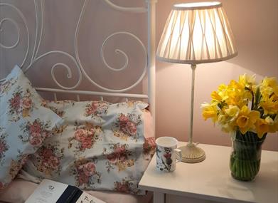 There is ground floor bedroom with en-suite bathroom with walk in shower. There are two steps into the cottage and one small one into the bedroom. Flat parking area or with ramp