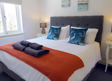 - Main bedroom: Superking-size bed (6’), SMART TV, blackout blinds, wardrobe, dressing table.