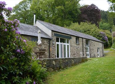 The holiday cottage sits in the luxuriant gardens of Pantlludw between a mountain stream and banks of rhododendron and azalea. Yr Hen Stablau was originally working stables with stalls for four horses. These would have been used either for farming on the Pantlludw and Esgair estate (in nearby Pantperthog) or for carriages.