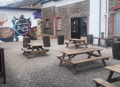 Here at the Cardiff Arms our stylish Bistro & Bar is a welcoming venue offering light bites, freshly made pizzas in our charcoal pizza oven, a well-stocked bar offering locally made beers and spirits, traditional favourite main courses with a Welsh twist and an extensive cocktail menu.
