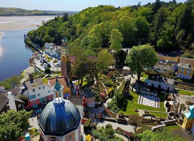 Continue west on the A487 through Penrhyndeudraeth and straight on at the roundabout (signed for Minffordd); pass the railway station and the entrance to Portmeirion will be on your left.