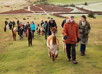 Visitors can enjoy a fantastic, family friendly experience at Alpaca my Boots. Our Alpaca treks last approximately 90 minutes. We frequently trek on Mynydd Illtyd common, taking in Twyn Y Gaer, the remnants of an Iron Age fort. Here, you will have fantastic views of the Brecon Beacons, Usk valley and the Black Mountains. You will be surrounded by breath taking scenery and there will be ample opportunity to take a good selfie with your Alpaca by your side!