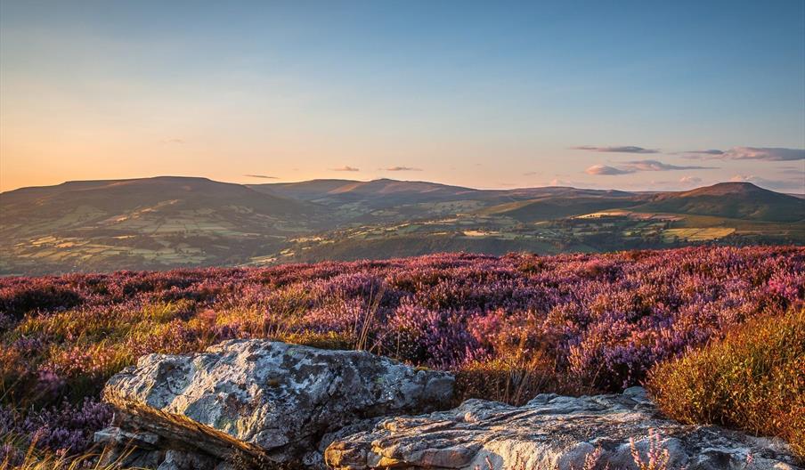 Pen Tir is one of the most westerly of the Black Mountains with beautiful views across high heather moorland west towards the Brecon Beacons and east towards the highest of the Black Mountains, Waun Fach at just over 810m.