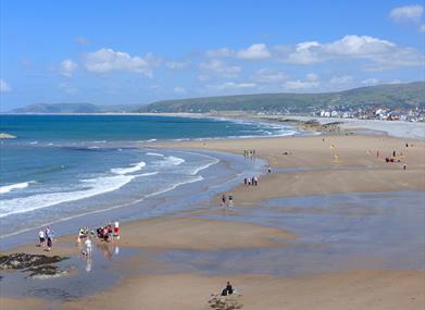 Because of its shallow waters Borth beach is well suited to families with young children and is also a popular location for swimming, surfing, fishing, sailing and windsurfing and for walking the dog out of season.
