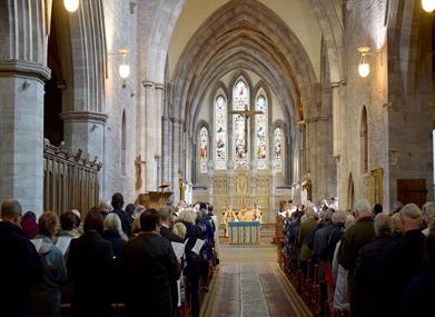 During its period as a parish church it was restored under Sir George Gilbert Scot; the chancel vaulting and other roof work are his design. The North transept is also the chapel for the South Wales Borderers with their flags and regimental honours on display there. All this has led to a lot of historic details well worth while exploring. If you want help, there are church visitors on duty to answer your questions and special tours can be arranged for school parties and other groups if you contact the Cathedral in advance.