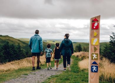 The Miners Trail winds along the head of the valley, following a leat which once carried water to power lead mines. It climbs a short but steep hillside towards the Giant’s Chair, a great place to take in the view. It then drops down across a forest road and into an area which has recently been planted with 12,000 native trees on its way back to the visitor centre.