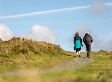 Follow the waymarkers up onto the heather clad ridge and enjoy the views of Cardigan Bay and the Cambrian Mountains. Head past the stone viewpoint before dropping down through the trees. Join the narrow leat path which brings you back to the car park.