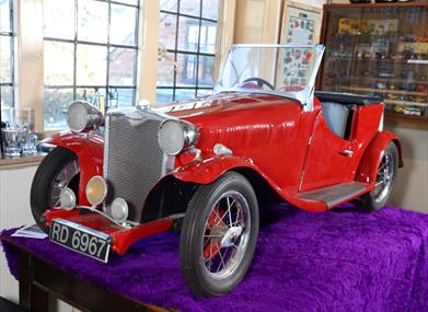 Marques include Bugatti, Bentley, Mercedes and Rolls-Royce cars together with Grand Prix and World Land Speed Record breakers, buses, trams and vans of every description. Two superstar models over three feet long reign over their lesser subjects. One is a Singer Le Mans which is a replica of a car that Miss Rogers owned and drove for forty years until 1998. The second, Madame Cloette, was probably the forerunner of Brum – a feisty car hero of children’s TV in the Nineties.