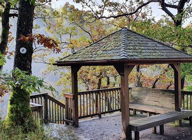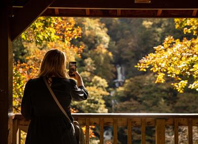 Whilst catching your breath at the end of your walk, take time to use the Free Viewing Telescope. Enjoy a close up view of the Gyfarllwyd Falls on the Rheidol river, the surrounding woodland and distant Cambrian Mountains or a Red Kite soaring high above. The exit is opposite the Hafod Hotel.