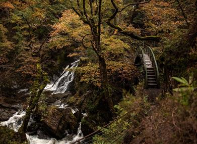 Devil's Bridge Falls Nature Trail provides a unique opportunity to see this great natural feature in the Mynych (translates as the 'Monks River'), a tributary of the larger Rheidol River, which runs in a deep, wooded valley towards Aberystwyth and the Cardigan Bay coast.