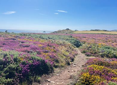 Seasonal colour transforms the landscape throughout the year—from spring wildflowers and summer gorse to autumn bracken and berries—while rock pools and tidal inlets offer moments of quiet discovery.