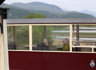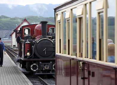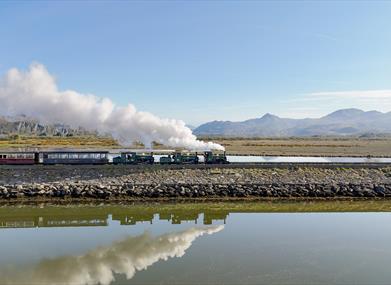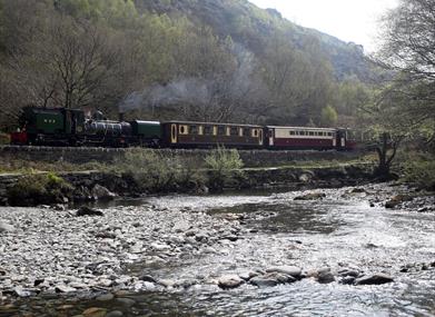 In the heart of Eryri (Snowdonia), the historic trains climb over 700 feet from sea level into the mountains through tranquil pastures and magnificent forests, past lakes and waterfalls, round horseshoe bends (even a complete spiral) clinging to the side of the mountain or even tunnelling through it.