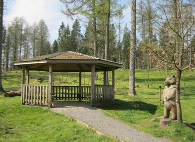 Family friendly acilities include a play area, low ropes course and two puzzle trails plus a café to relax in and enjoy fresh local produce and views. There are picnic tables around the main car park and along the walking trails – some have metal frames for holding disposable barbecues.Forest Frenzy is a low rope assault course recommended for ages 7-15. There is also a play area for under 7s.
