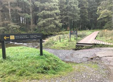 This part of the Trail starts at the Market Hall in Llanidloes, crosses the River Severn, through woodland and pasture brings the Trail to Bryntail mine and the Clywedog dam. You walk through the Hafren Forest with its giant pine trees, climbing through attractive moorland takes you to a ridge where you can see Dylife, a small settlement known at one time for its mining, below you.