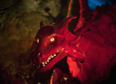 Once your boat docks, a hooded Dark Age boatman leads you through the winding tunnels and vast caverns of the Labyrinth. Along the way, some of Wales’s earliest stories come to life with light, sound and special effects. Hear about the Battle of Camlan where Arthur faces his nephew Mordred, discover the red and white dragons fighting beneath King Gwrtheyrn’s crumbling castle, and learn how the powers of Bran the Blessed were said to protect the land long after his time. These and other tales build up to the Dragon River finale, where you may disturb the Guardians of the Labyrinth.