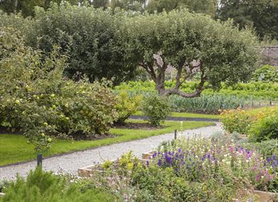 Within the walls you will find productive kitchen gardens, ancient fruit trees, remnants of horticultural technology spanning the lifetime of the garden, herbaceous borders and a wonderful herb garden.