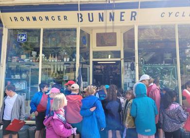 There are ten to find around the town so pick up a quiz sheet from the Library, Bunners or the Bookshop and off you go. Complete the trail and drop in your answers to the returns box outside the Library, and you could even win a prize! Children from Montgomery School had fun testing out the new trail in between showers.