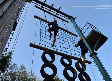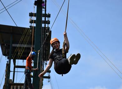 We have a purpose built high ropes course and zip line tower at our centre in Pendine