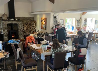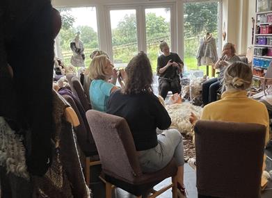 Mud and Wool is located on a beautiful 14-acre small holding with outstanding views over the Cambrian mountains. Jo and Adam are artists, Jo a weaver and Adam a potter. Art workshops are held in the beautifully converted barn which is now the studio and teaching area.