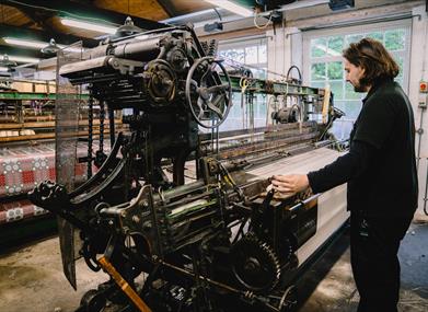 A raised walkway in our newly re-opened Weaving Shed gives a unique view of textiles in production, while the Textile Gallery displays aspects of the National Flat Textile Collection.