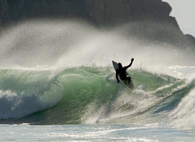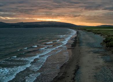Porth Neigwl, or Hell's Mouth as it is also known, is a south west facing rural beach frequented by surfers and kayakers because of the relatively large waves. It is a gently shelving beach, consisting mainly of medium sized pebbles at high tide but with vast expanses of sand at low tide. The beach seldom gets busy and is often a good spot to get away from the busier beaches of Abersoch.