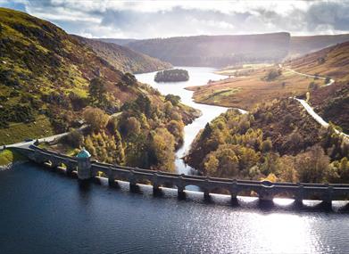 Leaving Rhayader, the B4518 route links the Elan Valley dams and upwards across the central Cambrian Mountains before desending to Cwmystwyth. From there take follow the B4574 to Devil's Bridge where you can travel on to the university town of Aberystwyth on the Mid Wales coast.